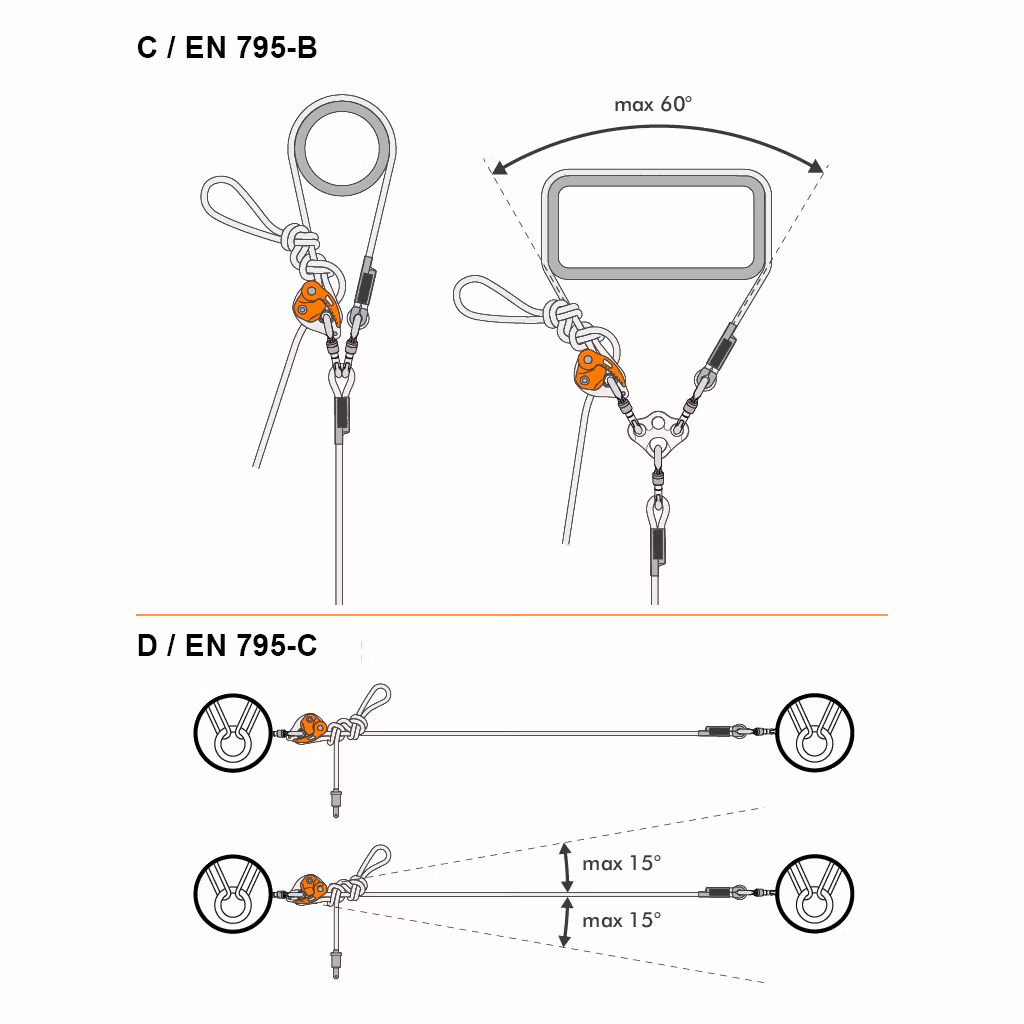 - when used in accordance with EN 795-C, it can be used to create a temporary horizontal singlespan or multiple span lifeline (Fig. D);